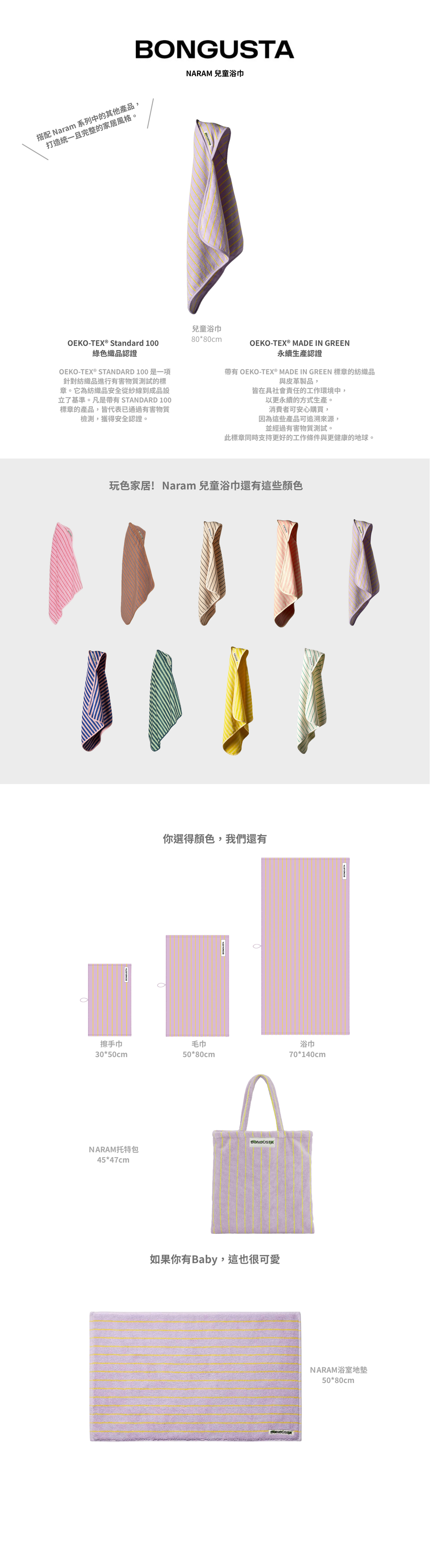Naram 兒童連帽浴巾採用 100% 有機棉 製成,並通過 OEKO-TEX® 認證。專為與孩子一起享受平靜、舒適的沐浴時光而設計。柔軟的純棉材質,溫和親膚,呵護嬌嫩肌膚。