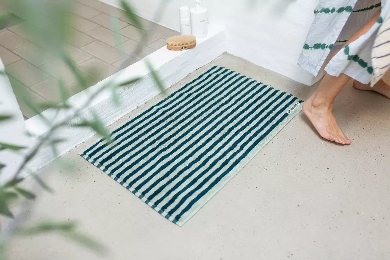 Naram 浴室地墊 採用 100% 有機棉 製成,並通過 OEKO-TEX® 認證。地墊以雙股紗織造,具有高吸水性、耐用性佳與極致柔軟的特性。尺寸為 50 x 80 公分。可搭配 Naram 系列 其他產品,打造完整一致的浴室風格。
