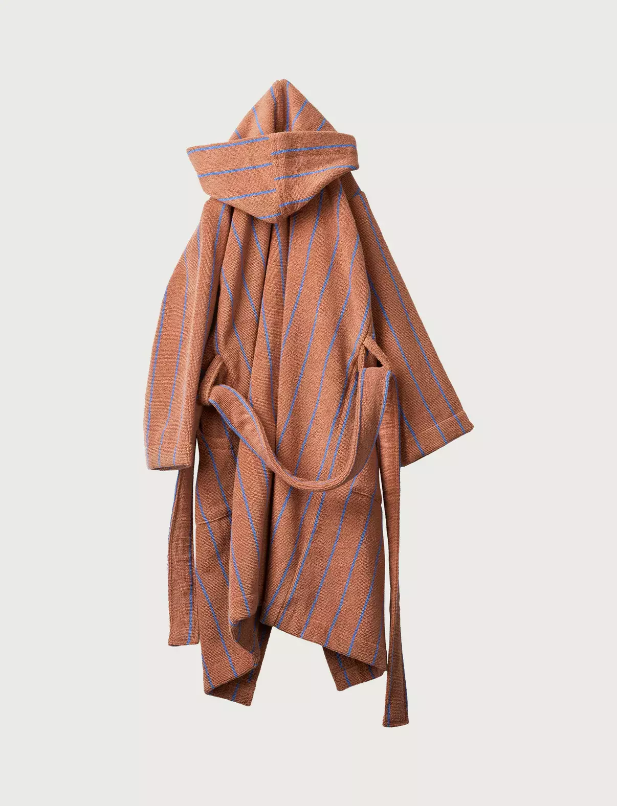 Naram 兒童浴袍採用 100% 有機棉製成,並通過 OEKO-TEX® 認證。浴袍以雙股紗織造,具備高吸水性、長久耐用性與極致柔軟的觸感。