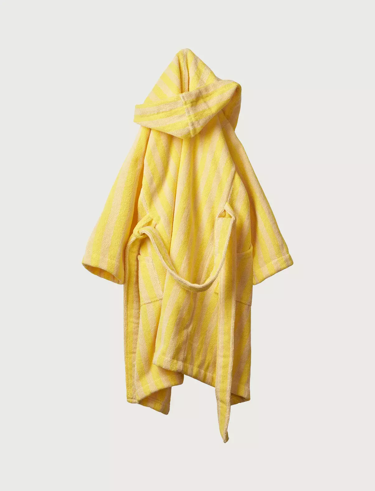 Naram 兒童浴袍採用 100% 有機棉製成,並通過 OEKO-TEX® 認證。浴袍以雙股紗織造,具備高吸水性、長久耐用性與極致柔軟的觸感。