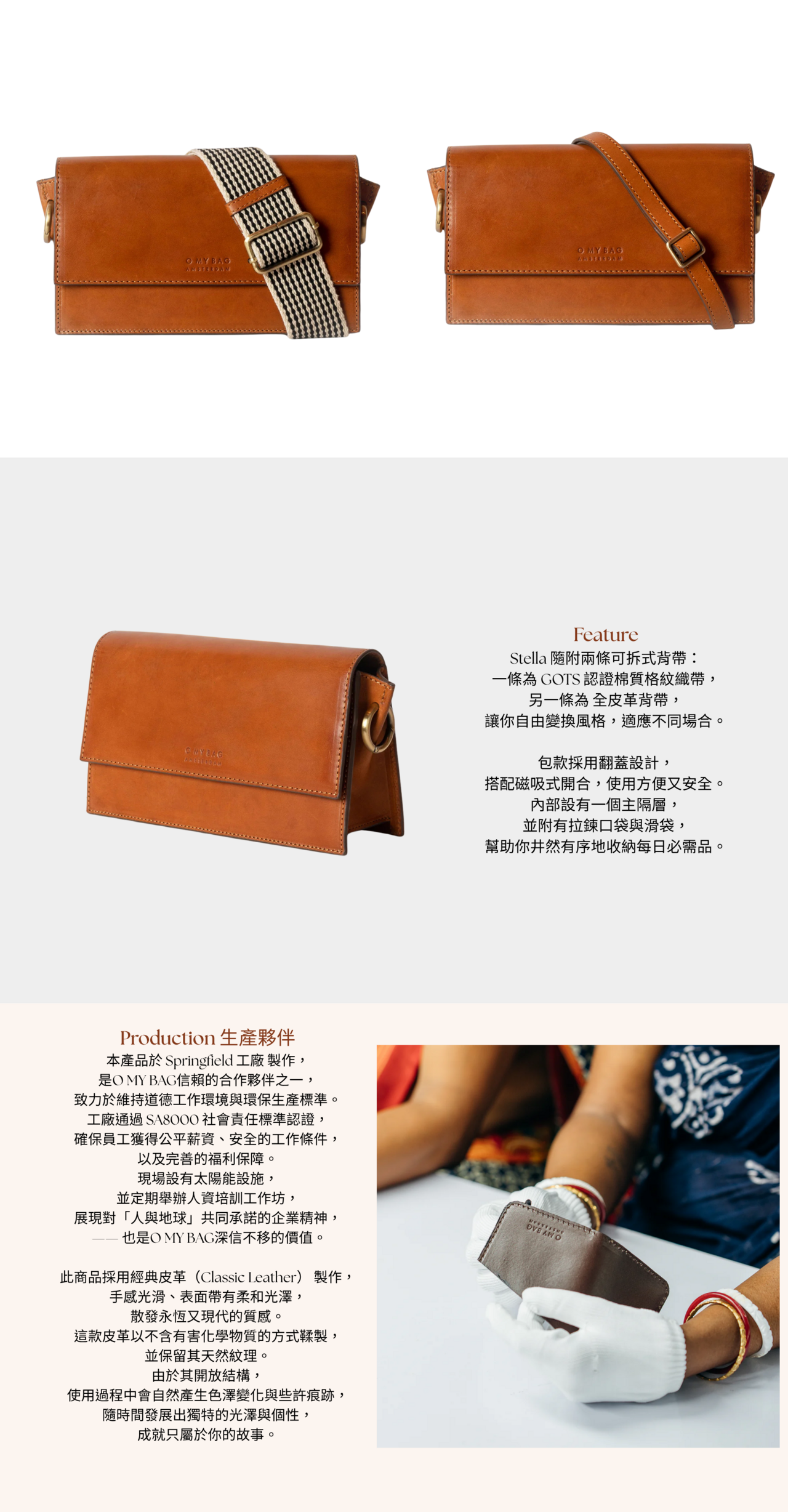 本產品於 Springfield 工廠 製作,是O MY BAG信賴的合作夥伴之一,致力於維持道德工作環境與環保生產標準。工廠通過 SA8000 社會責任標準認證,確保員工獲得公平薪資、安全的工作條件,以及完善的福利保障。現場設有太陽能設施,並定期舉辦人資培訓工作坊,展現對「人與地球」共同承諾的企業精神 —— 也是O MY BAG深信不移的價值。