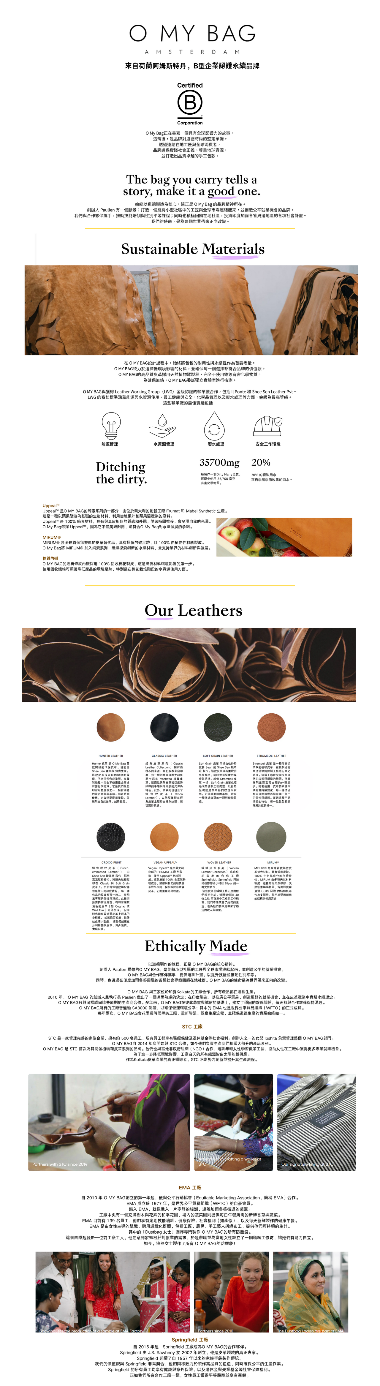 本產品由O MY BAG環保意識深厚的合作夥伴工廠 STC 製造,他們致力於公平生產作業,與我們所有生產夥伴一樣,提供平等薪資與產假保障,這些價值貫穿我們整個供應鏈。
