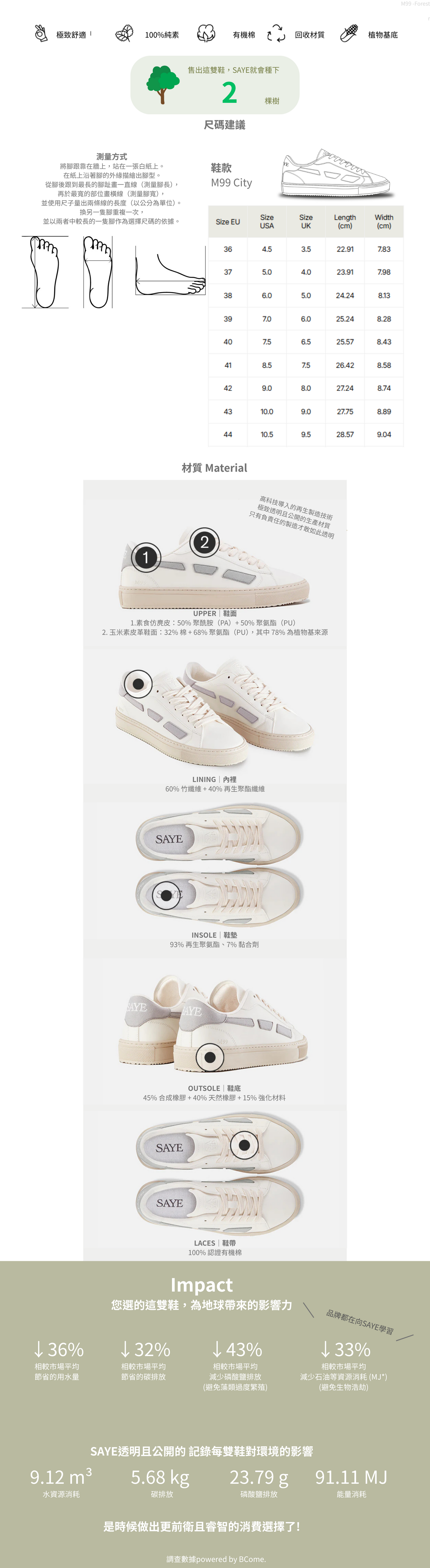 • 永續承諾: 每售出一雙球鞋,SAYE資助種植 兩棵樹 (看greenspark追蹤SAYE的植樹紀錄https://reurl.cc/Eb8lpm)