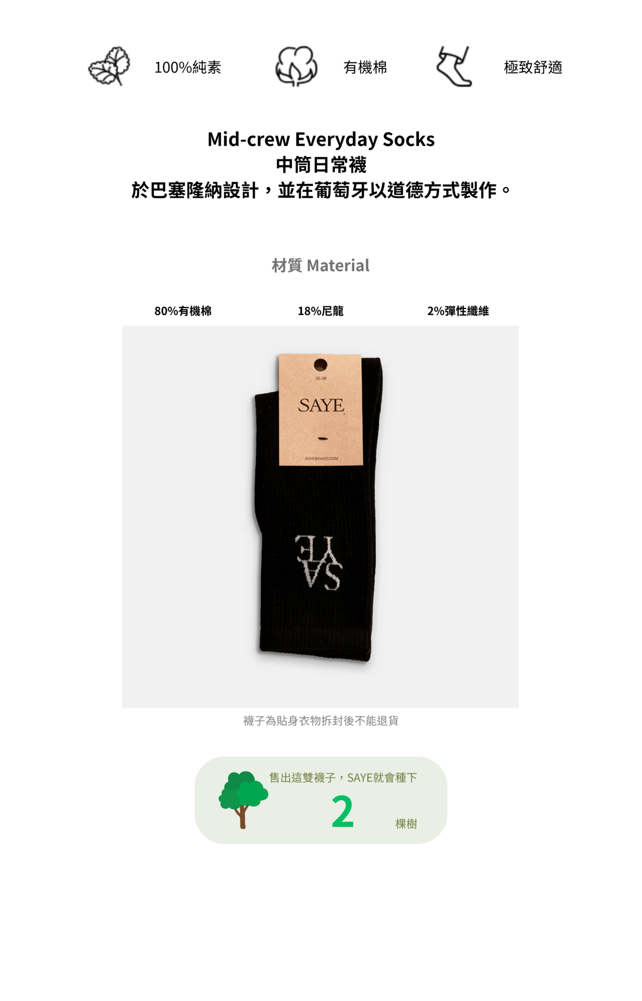 西班牙 SAYE - Crew Everyday 襪子 - 黑
